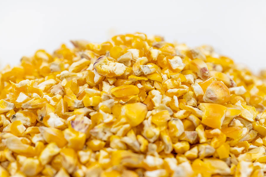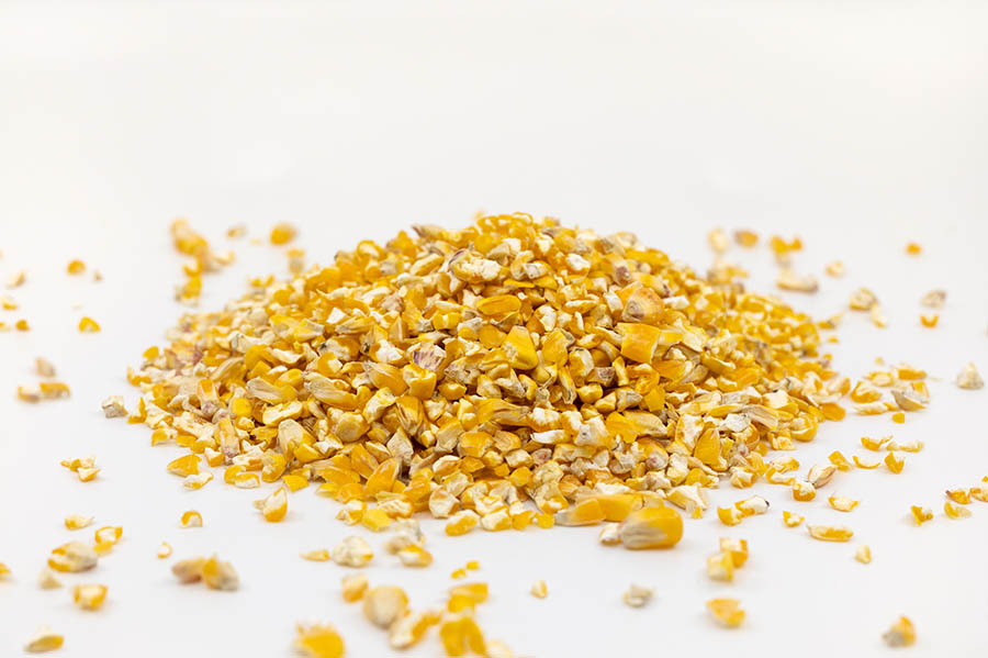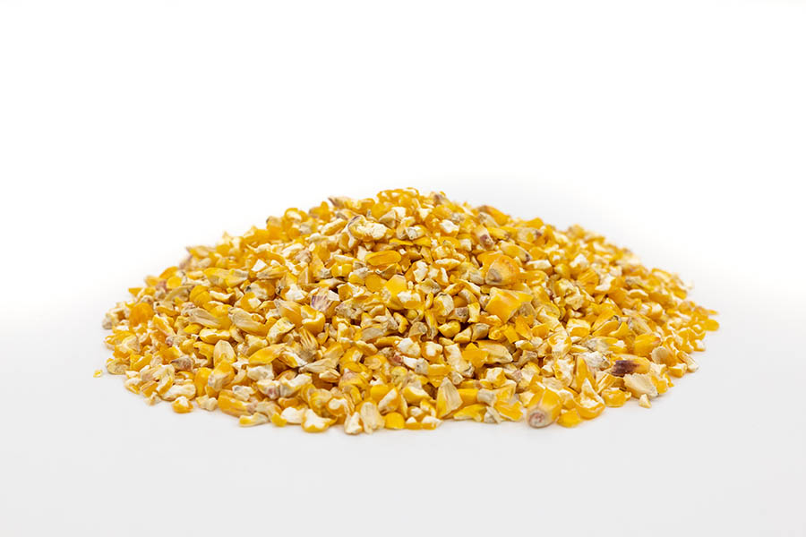 Grob gebrochener Mais in staubarmer Form, besonders als Beimengung in der Geflügelfütterung geeignet.